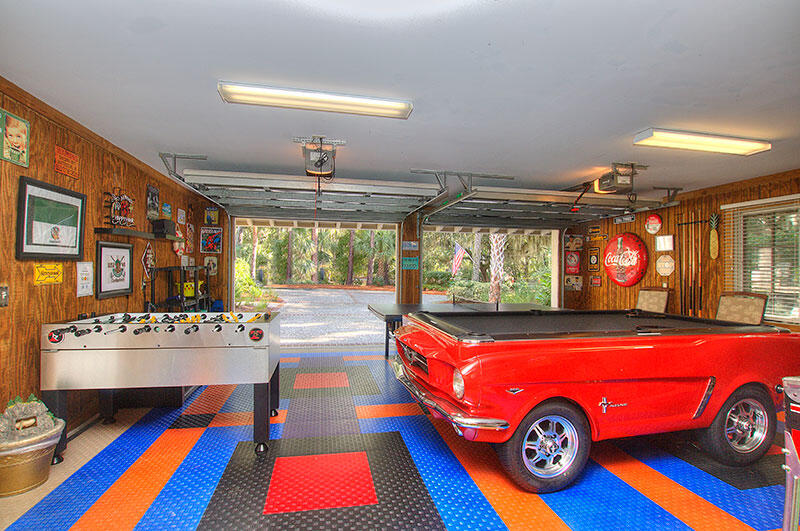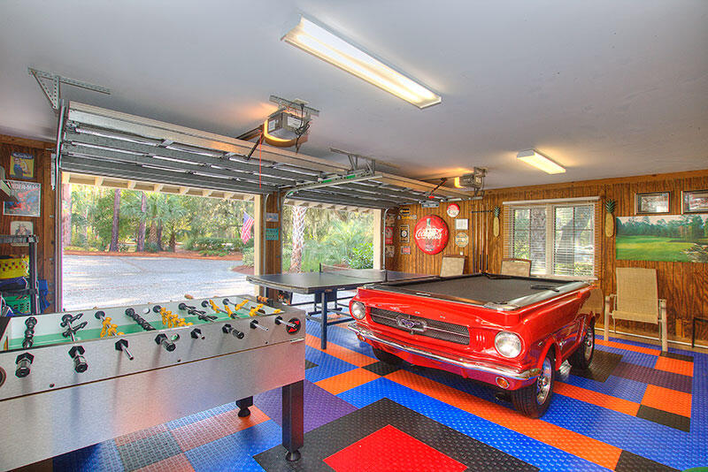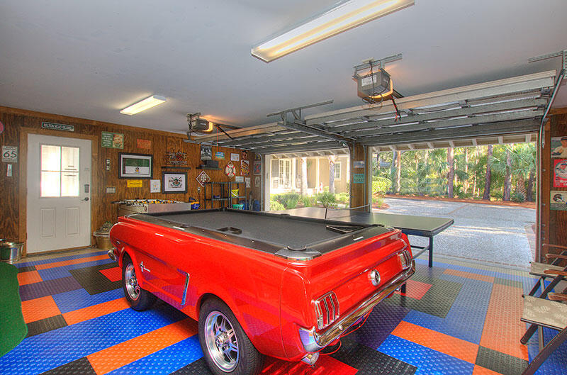 - Garage converted to Game Room with Classic Ford Mustang Car Pool Table, Ping Pong, Foosball, Putting Green & wall-mounted AC unit