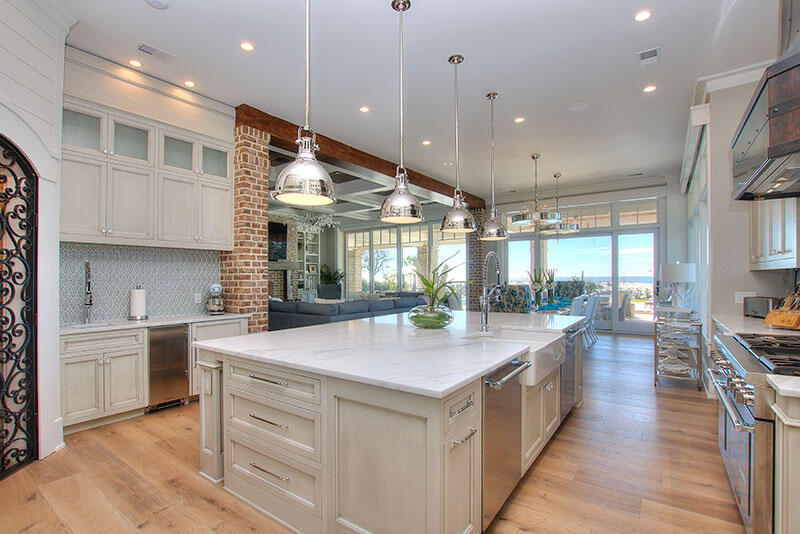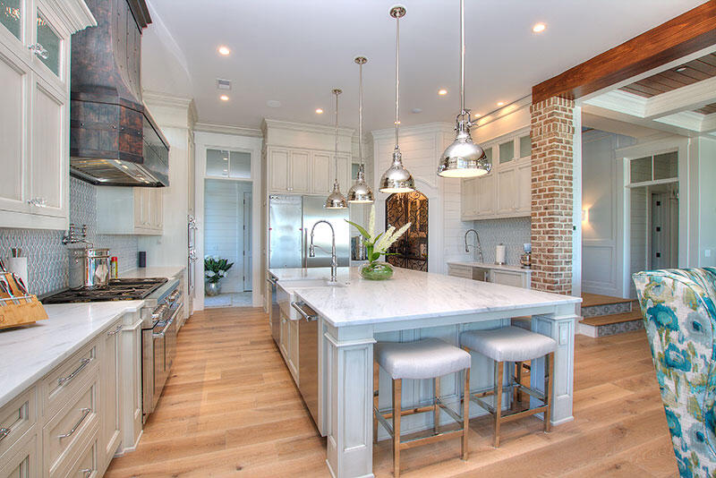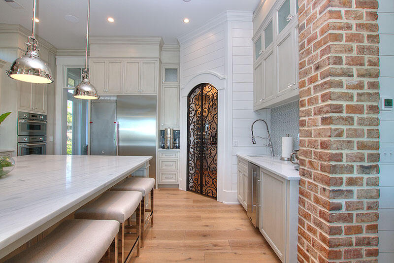 - Gourmet Kitchen with large center island and exposed brick finishes